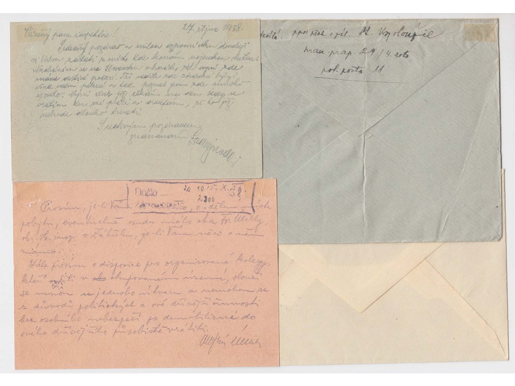 Polní pošta, 1938, 4 kusy celistvostí, různé útvary a jakost - viz. foto
