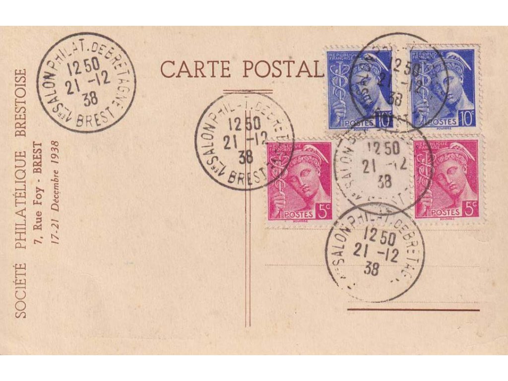 1938, Brest, 1er Salon philatelique, propagační pohlednic, neprošlé, dv