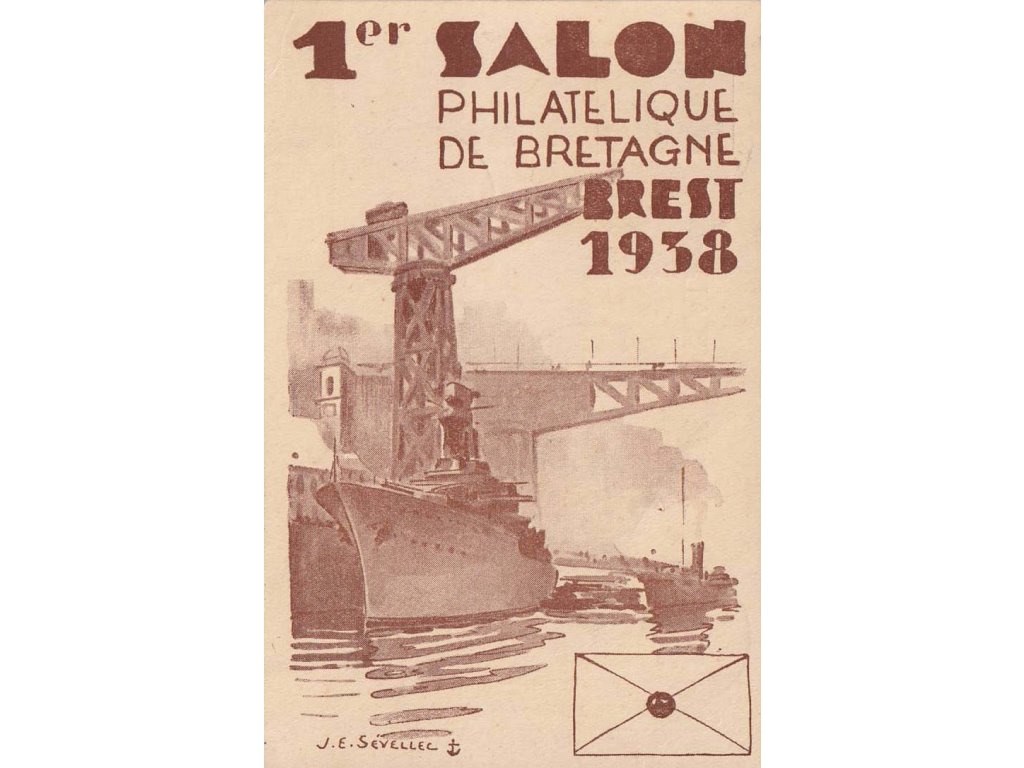 Pamětní razítko, 1938, Brest, 1er Salon philatelique, propagační pohlednic, neprošlé, dv, lehký fald