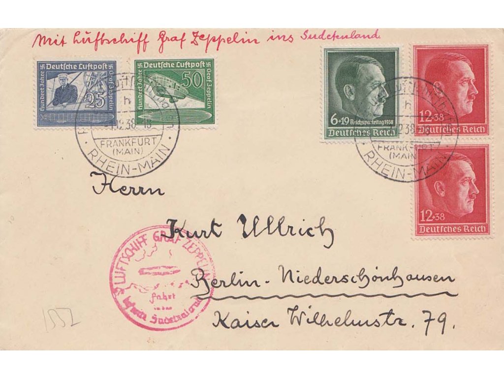 1938, Zeppelin Sudetenland, dopis vyfr. pestrou frankaturou, DR Frankfurt