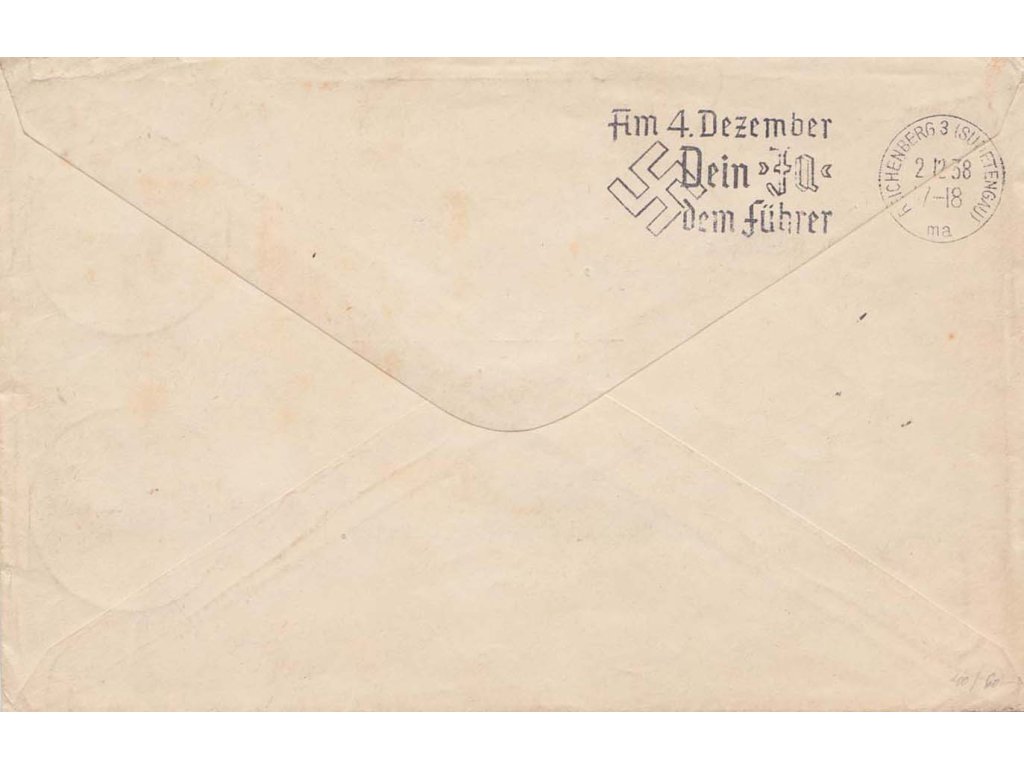 Sudety, 1938, Zeppelin Sudetenland, dopis vyfr. pestrou frankaturou, DR Frankfurt + příchozí Reichenberg, všechny náležitosti, horší jakost - viz. foto