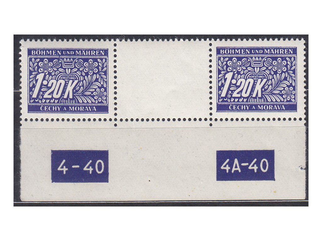 1939, 1.20K Doplatní, meziarší s DČ4-40-4A-40, Nr.DL10, **