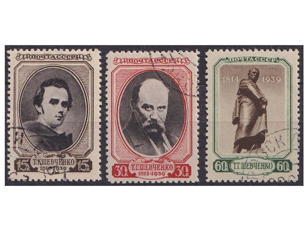 Poštovní známka, 1939, 15-60 K série Ševčenko, MiNr.695-97, razítkované