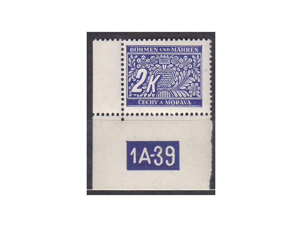 Doplatní známka 1939, 2K modrá, levý roh. kus s DČ1A-39, varianta X, Nr.DL11, **