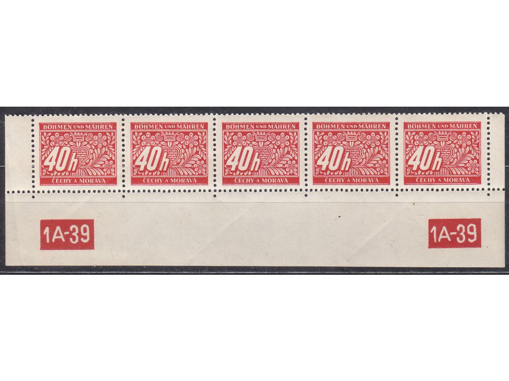Doplatní známka 1939, 40h červená, 5pás s DČ 1A-39, varianta X-X, Nr.DL5, **
