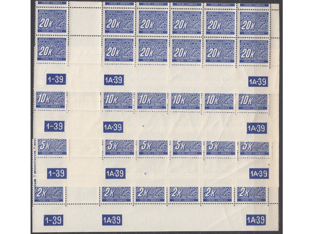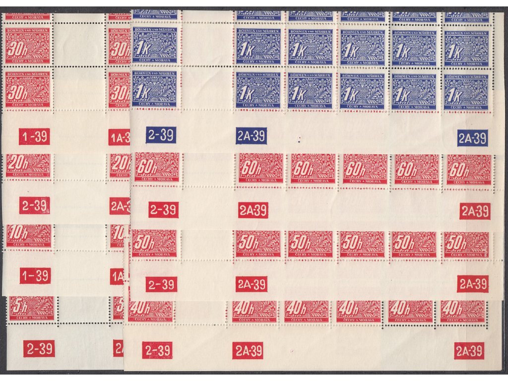 Poštovní známky 1939, 5h-20K Doplatní, spodní 12bloky s DČ a horním ořezem, Nr.DL1-14, **
