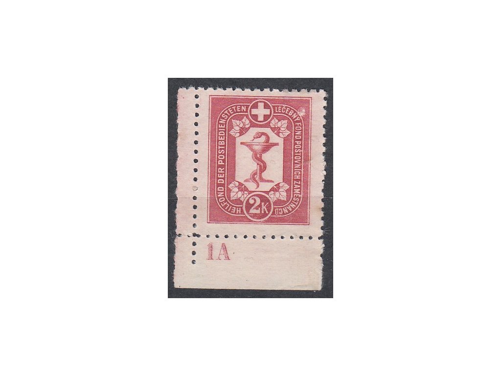 1940, 2K červená, známka léčebného fondu, rohový kus s DČ 1A, Nr.LF1, * po nálepce