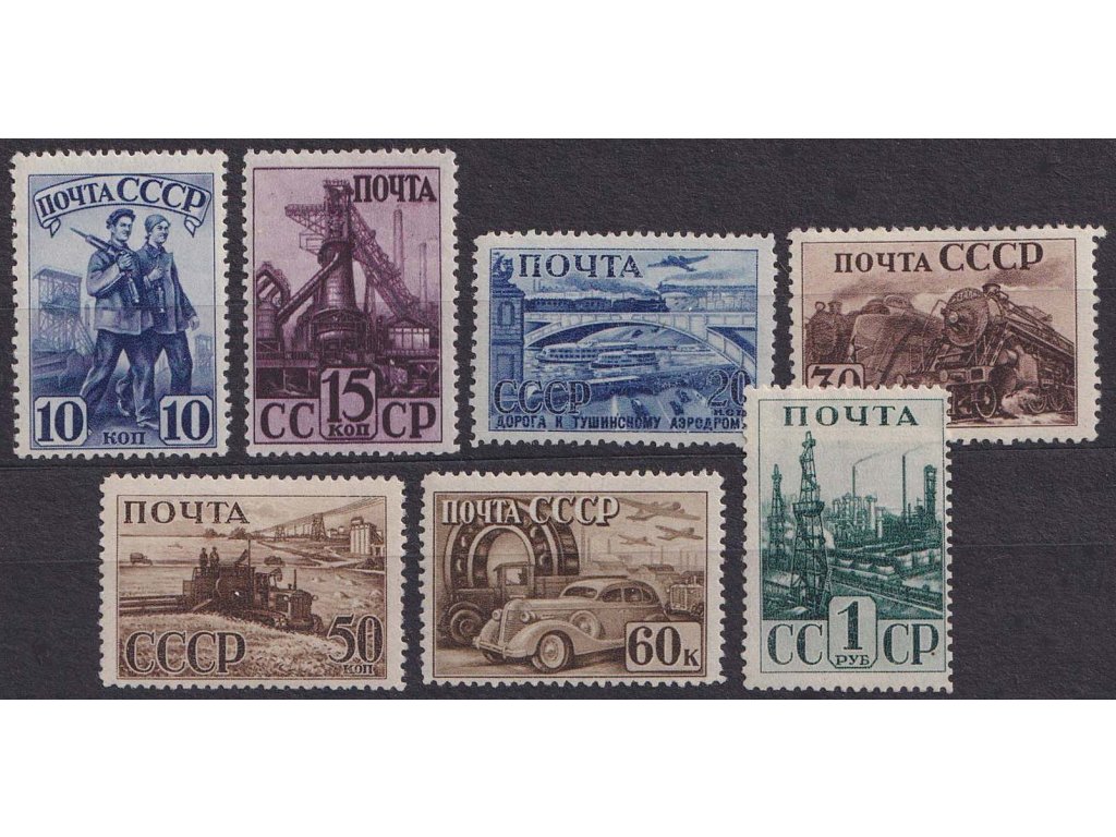 Poštovní známka, 1941, 10K-1R série Industrie, MiNr.786-92A, **
