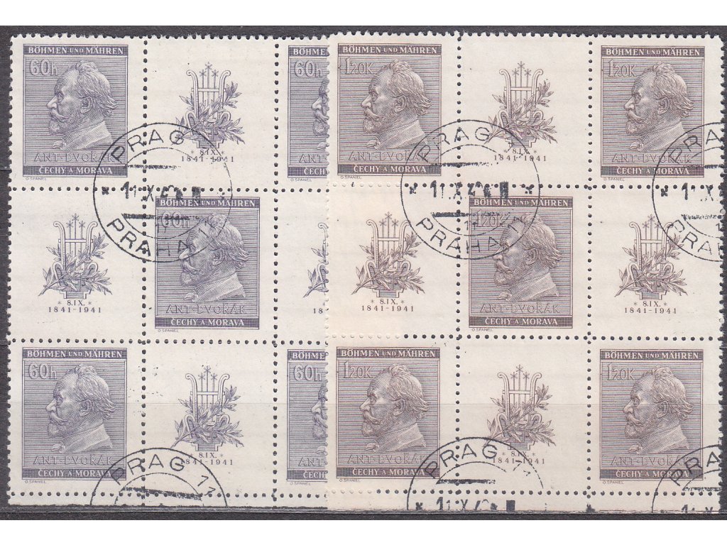 Poštovní známky 1941, 60h-1.20K A.Dvořák, Nr.62-63, VK21, razítkované, ilustrační foto