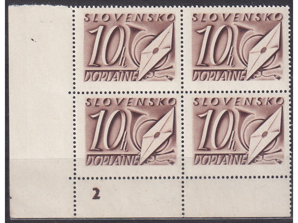 Doplatní známka 1942, 10h hnědá, roh. 4blok s DČ 2, Nr.DL24, **