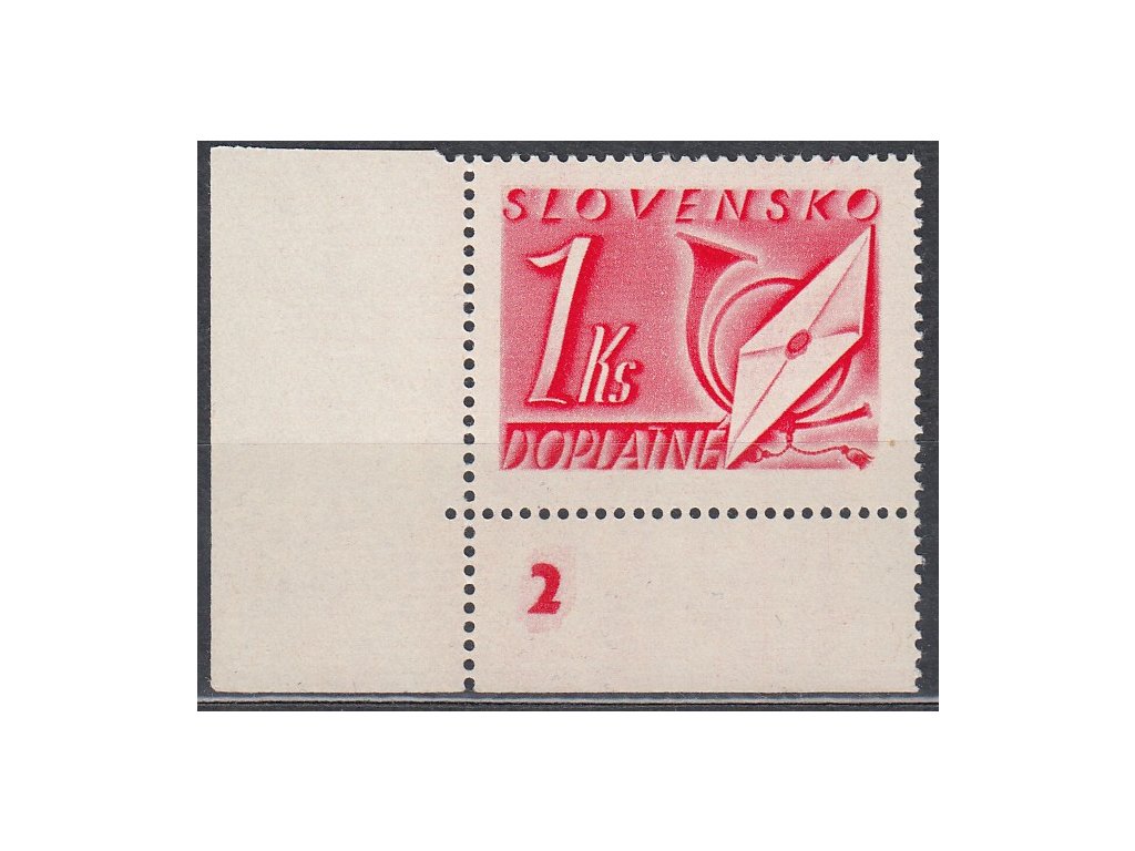 Doplatní známka 1942, 1Ks červená, roh. kus s DČ 2, Nr.DL30, **