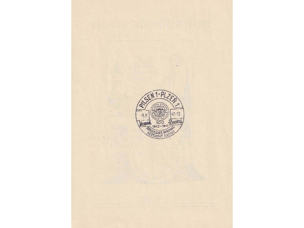 Pamětní razítka, 1942, Plzeň, Měšťanský pivovar, pamětní 2list, A5