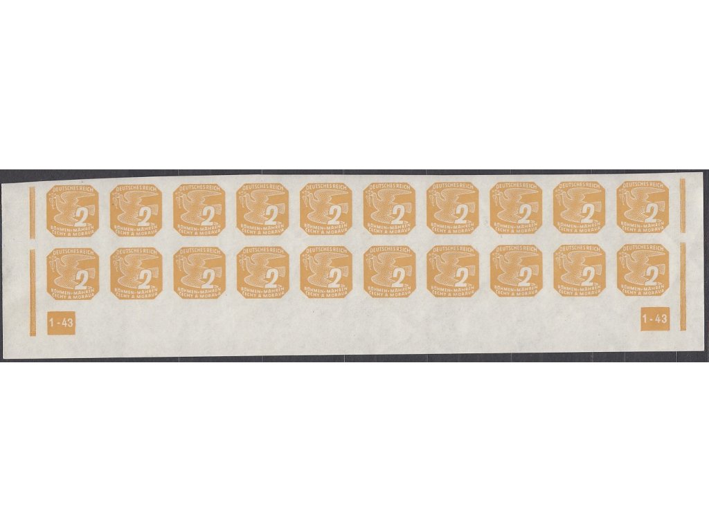 1943, 2h žlutohnědá, 20pás s DČ 1-43 - rám přerušen, Nr.NV10, **