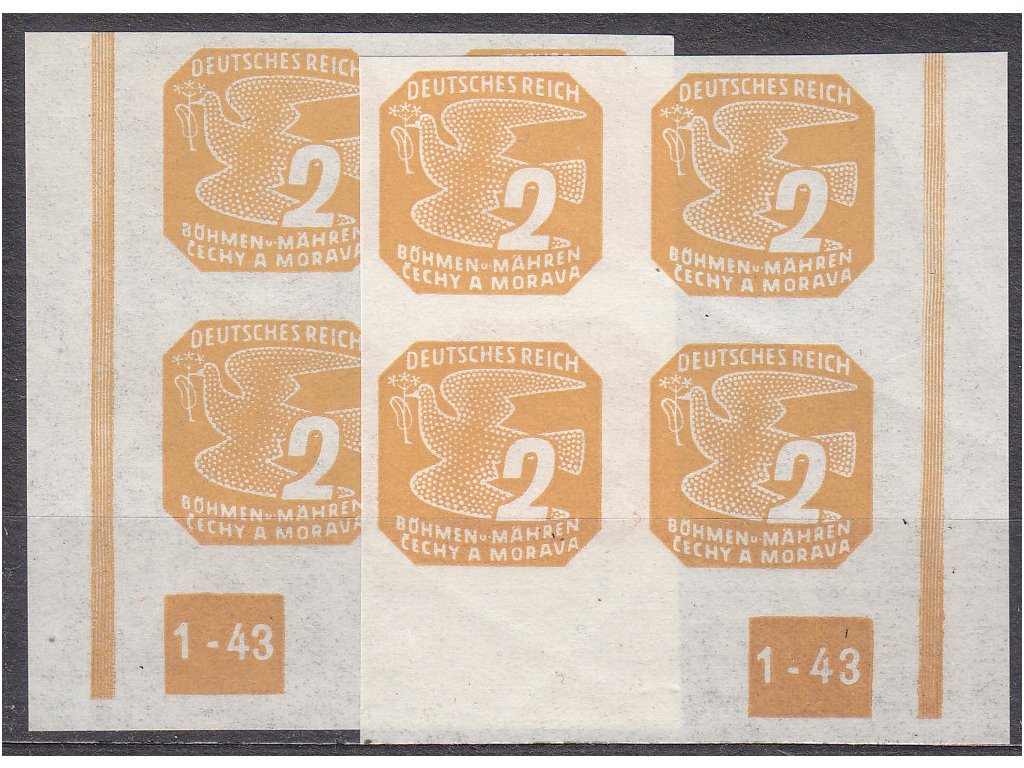 Novinová známka 1943, 2h žlutohnědá, roh. 4blok s DČ1-43, L+P, rám nepřerušen