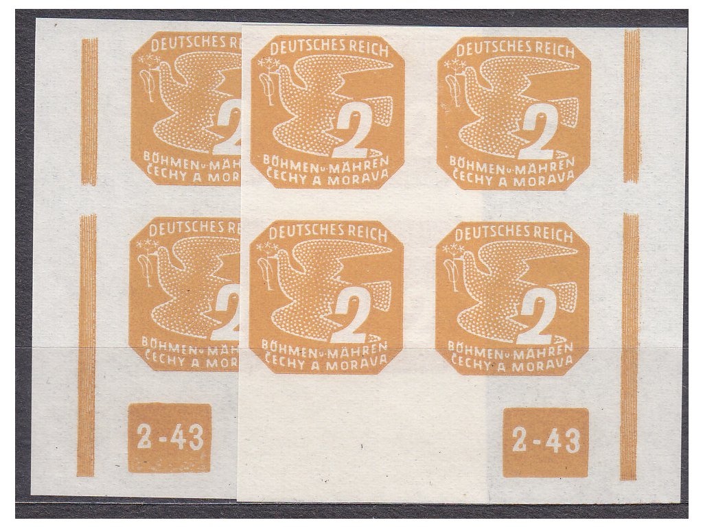 Novinová známka 1943, 2h žlutohnědá, roh. 4blok s DČ2-43, L+P, rám přerušen