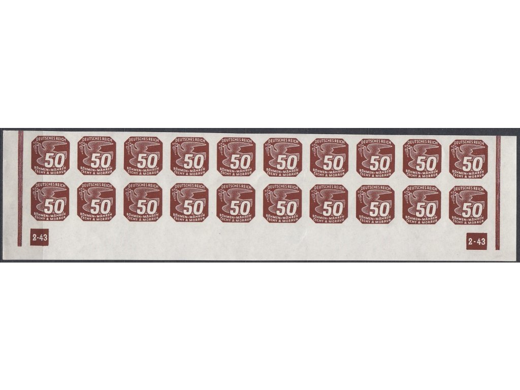 1943, 50h hnědá, 20pás s DČ 2-43 - nepřerušený rám, Nr.NV17, **