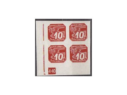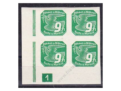 1939, 20h zelená, rohový 4blok s čarou na okraji, Nr.NV7, **, zahnědlé okraje na lepu