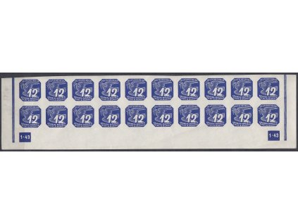 Poštovní známka 1943, 5h modrá, 10pás s DČ 4-43 - rám nepřerušen, Nr.NV11, **