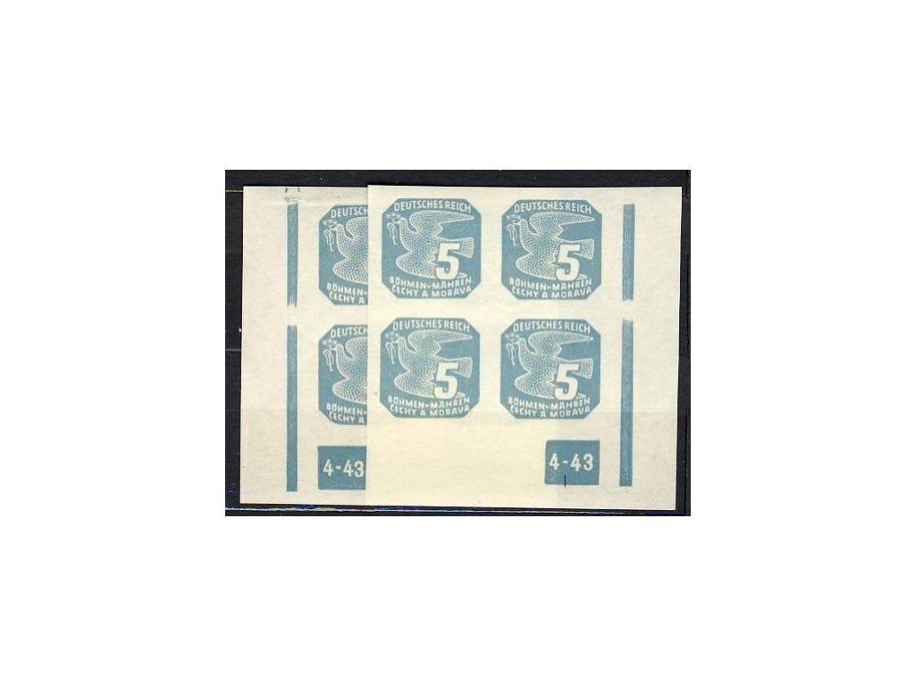 1943, 5h modrá, 2krát rohový čtyřblok s DČ 17-43, Nr.NV.11, **