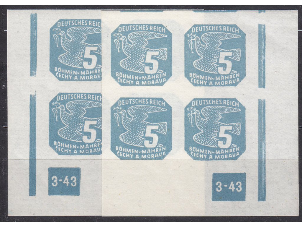 1943, 5h modrá, roh. 4blok s DČ3-43, rám přerušen, L+P, **