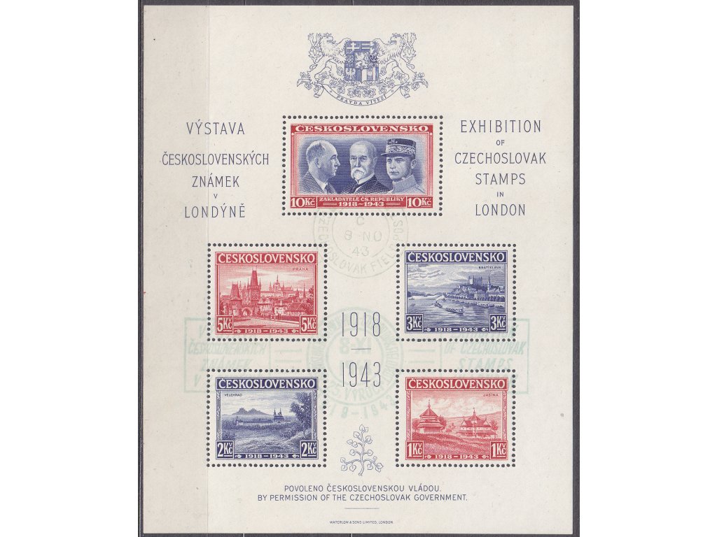 1943, Londýnský aršík, razítkovaný, pamětní razítko