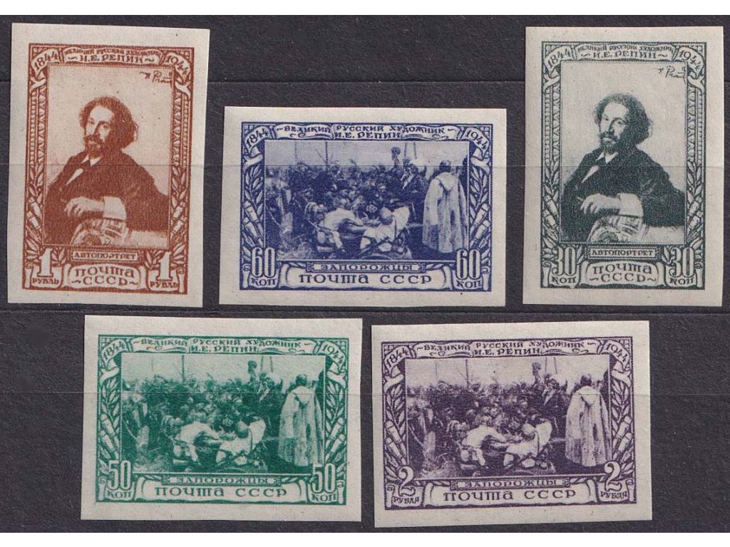 Poštovní známka, 1944, 30K-2R nezoubkovaná série Repin, MiNr.932-36B, */**