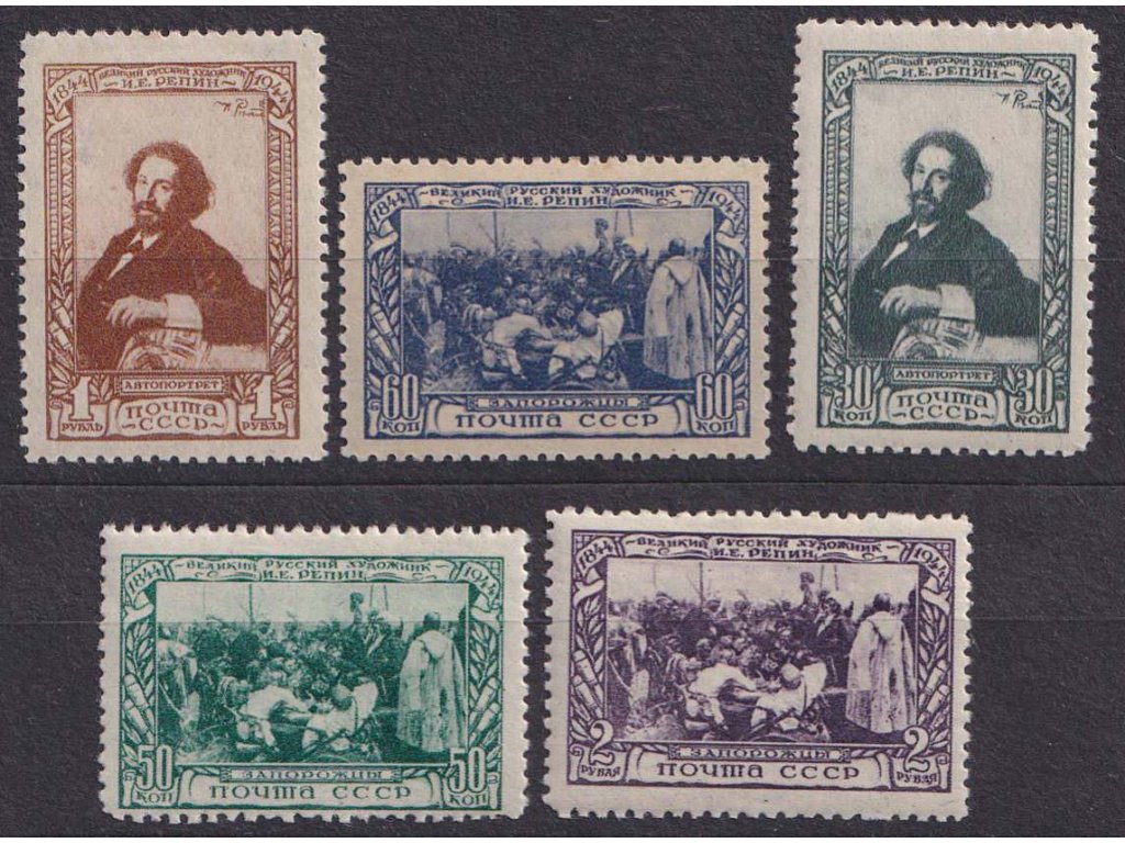 Poštovní známka, 1944, 30K-2R zoubkovaná série Repin, MiNr.932-36A, */**