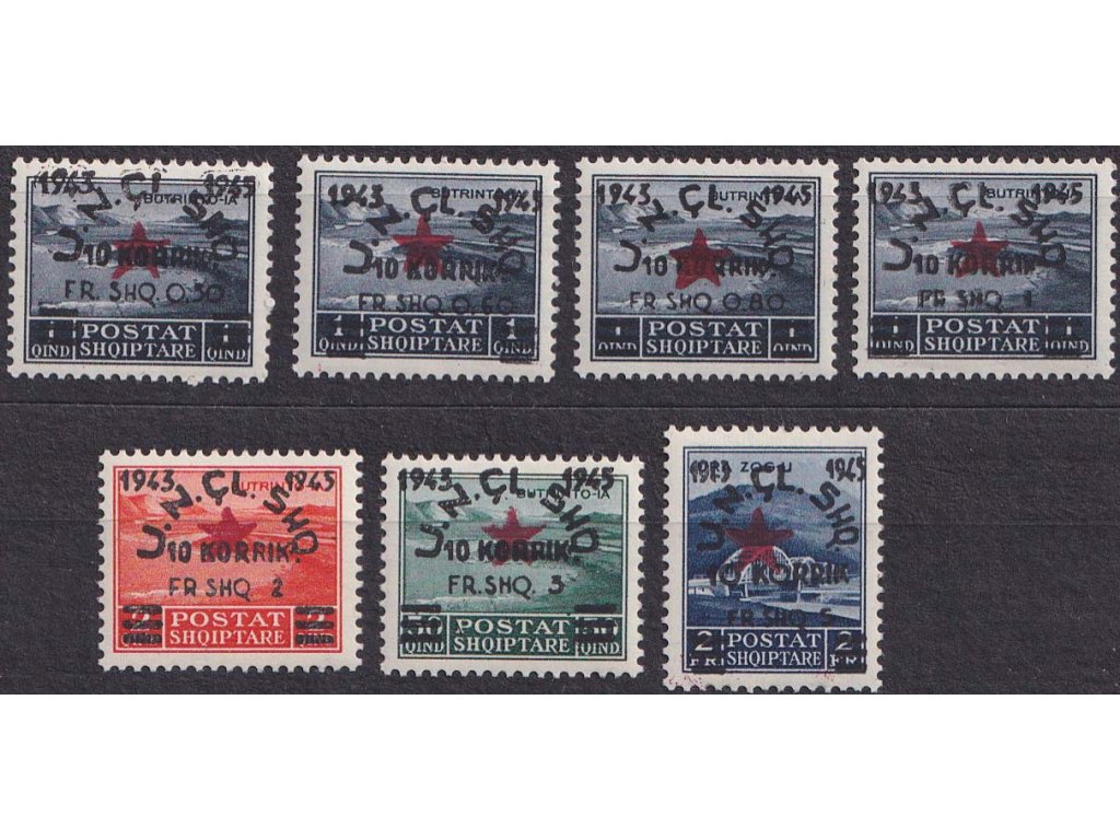 1945, 0.30Fr/1Q-5Fr/2Fr přetisková série, MiNr.368-74, **