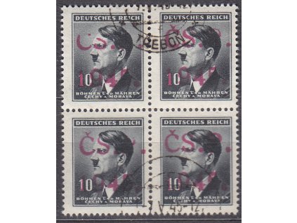 60h-1.20K Hitler, 3 hodnoty s přetiskem 5.V.ČESKOSLOVENSKO 1945, 4bloky, **, ilustrační foto