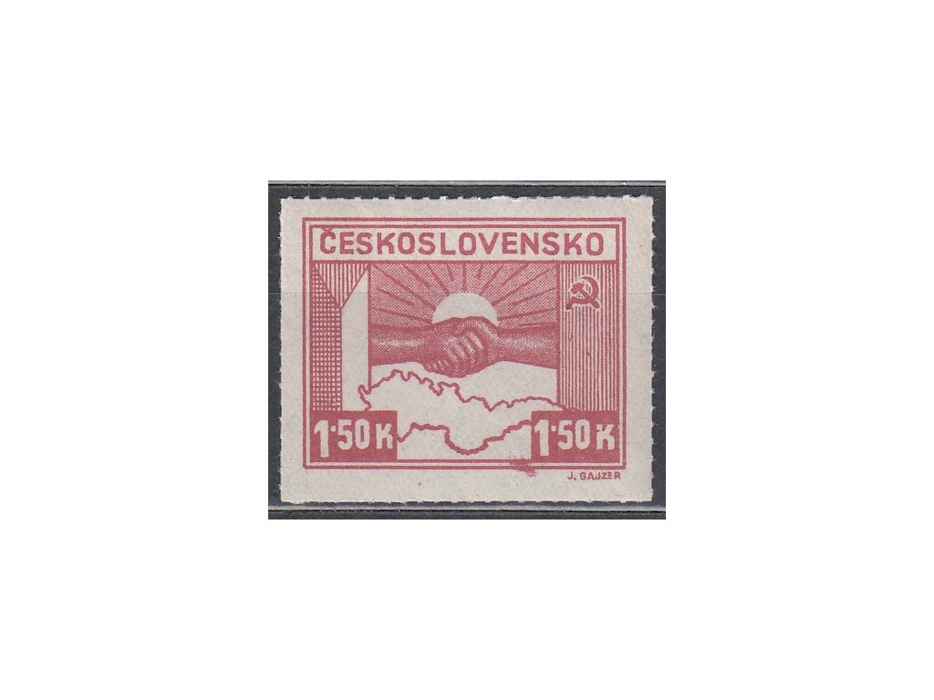 Poštovní známka 1945, 1.50K Košické, DV na ZP48/1 - skvrna přes spodní rámeček, Nr.353, **