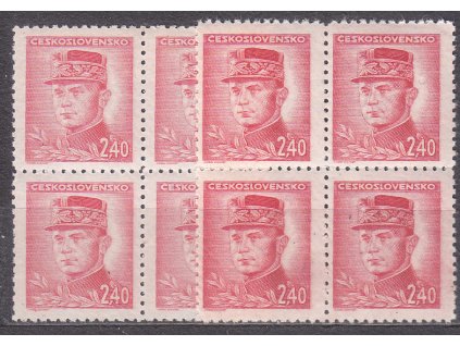 Poštovní známka 1945, 1.50Kč Londýnské, rohový 4blok s čárkou v okraji, Nr.396, **