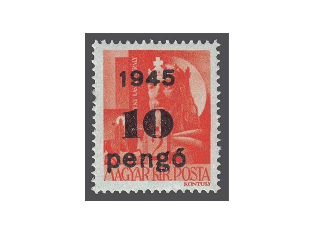 Poštovní známka, 1945, 10P/2f oranžová, MiNr.814, * po nálepce
