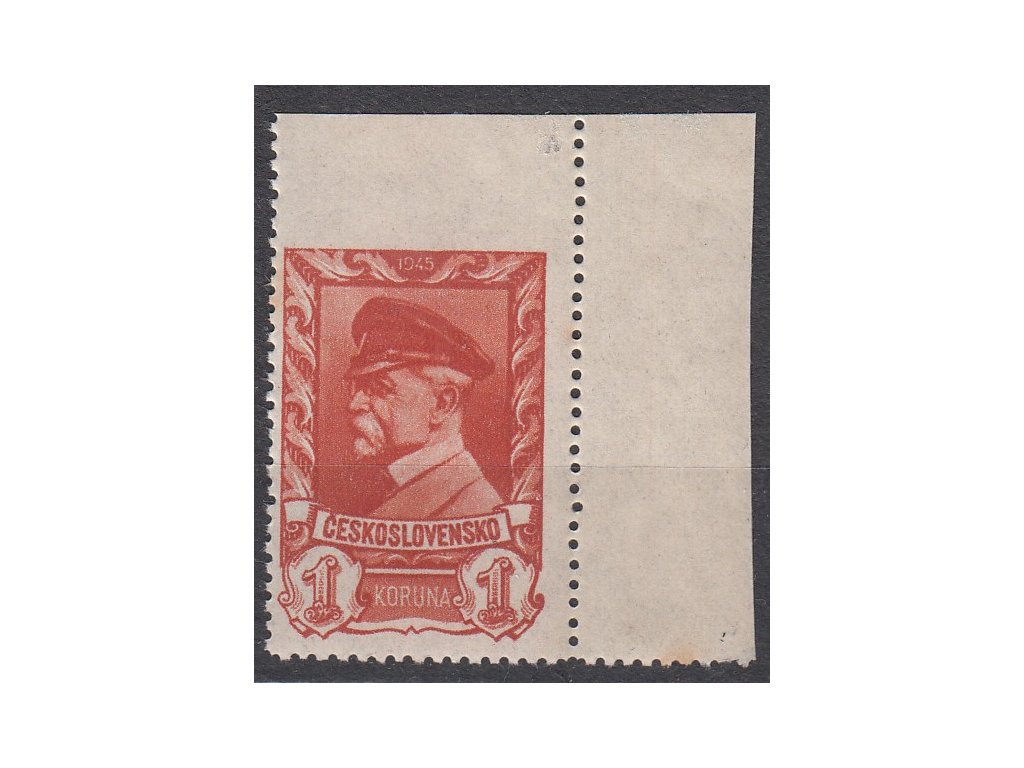 1945, 1K Moskevská, rohový kus s vynechanou horní perforací, Nr.385, **, lehce narezlý okraj
