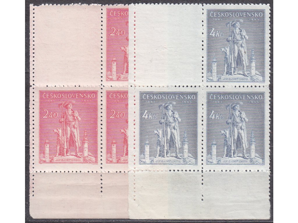 Poštovní známky 1945, 2.40-4Kčs Kozina, levé dolní roh. 4bloky, Nr., Nr.431-2, **