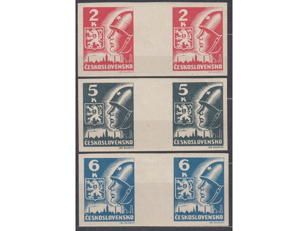 1945, 2,5 a 6K Košické, 2známková vodorovná meziarší, Nr.354-6Mv, **