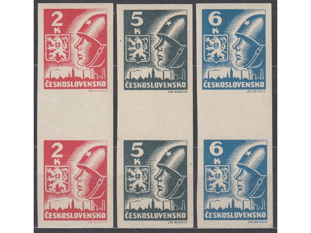 Poštovní známka 1945, 2,5 a 6K Košické, svislá meziarší, Nr.354-6Ms, **