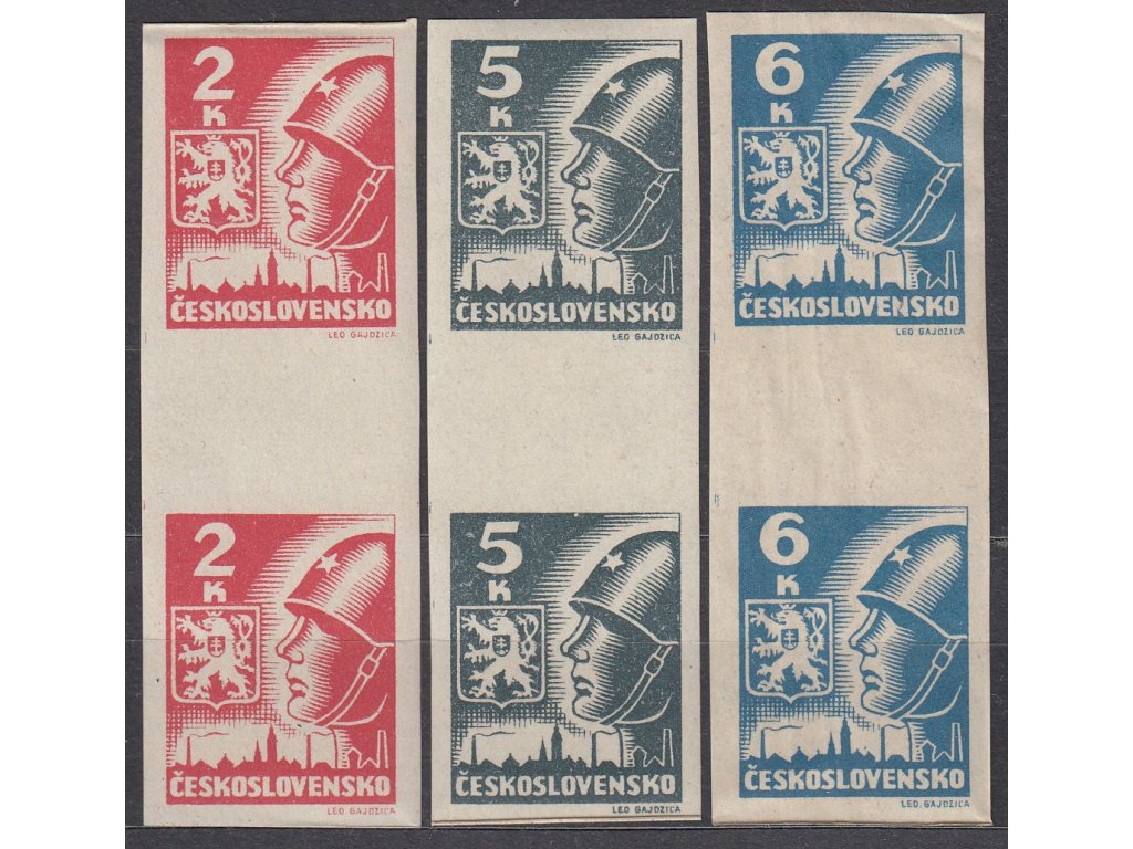 1945, 2,5 a 6K Košické, svislá meziarší, Nr.354-6Ms, **, 6K vada - výrobní vynechávky lepu