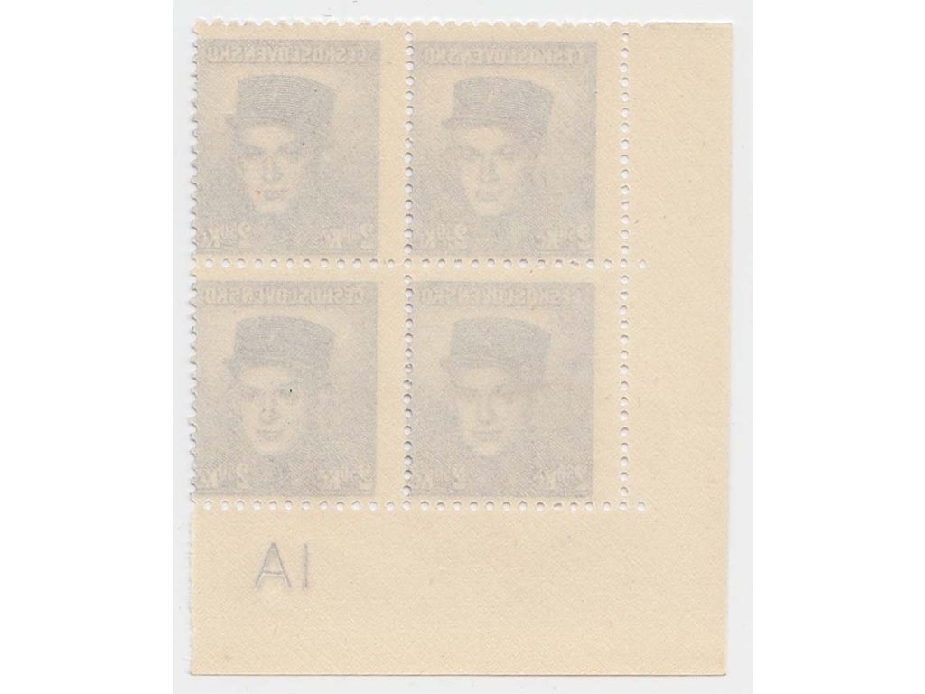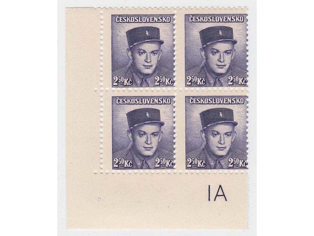Poštovní známka, 1945, 2.50Kč Londýnské, rohový 4blok s posunem perforace, Nr.398, **