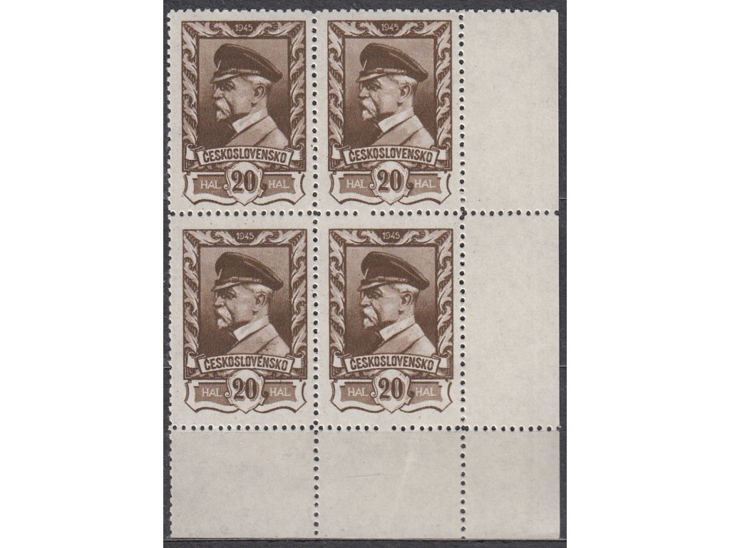 Poštovní známka 1945, 20h Moskevské, roh. 4blok s vynech. perf. otvory mezi zn., Nr.383, **