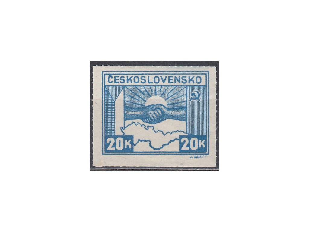 Poštovní známka 1945, 20K Košické, DV - nedotisk jména autora, Nr.359, **