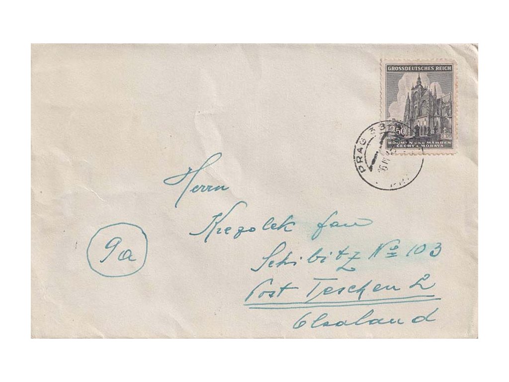 Poštovní známky, Protektorát, 1945, DR Praha, dopis, stopy pošt. provozu
