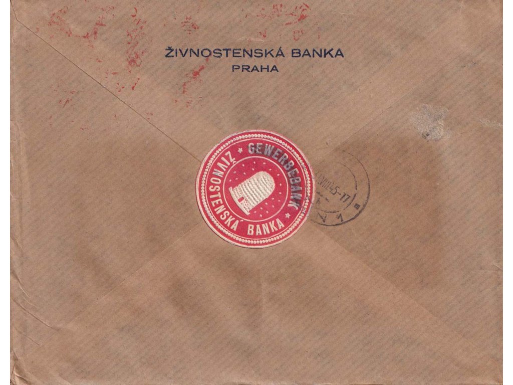 1945, DR Praha, frankotyp Živnostenská banka, R-dopis, okénková obálka,