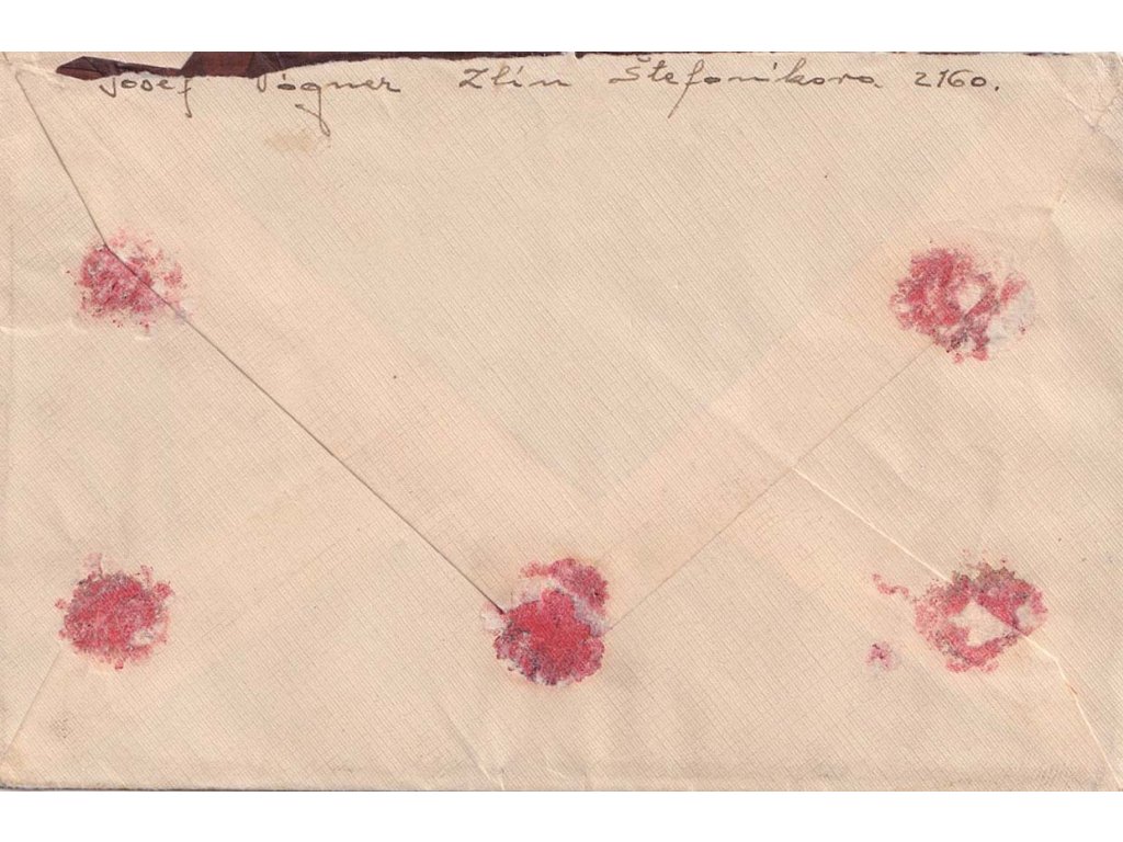 1945, DR Zlín, cenný dopis zaslaný do Prahy, lehká omačkání, stopy stáří