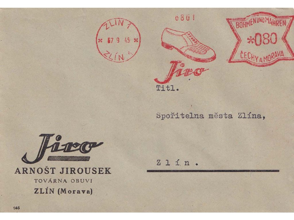 1945, DR Zlín 7.9.45 frankotyp Jiro, dopis zasl. ve Zlíně