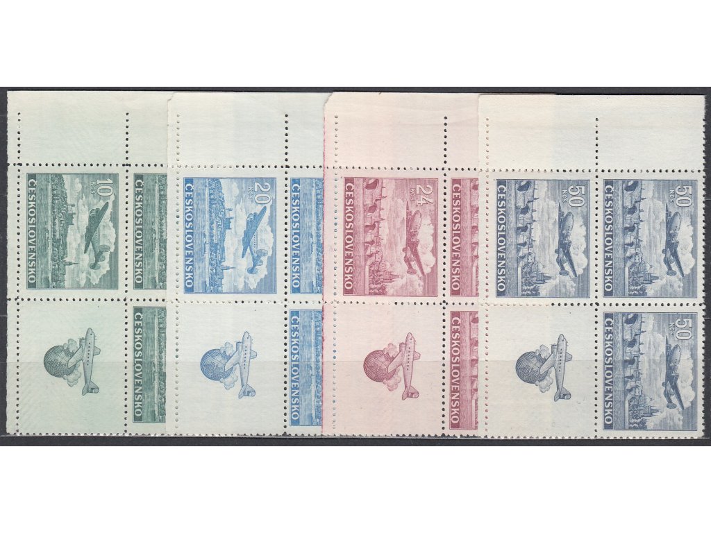 Poštovní známky 1946, 10-50Kčs Letecké, levé dolní roh. 4bloky s kupony, Nr.L20-4, **