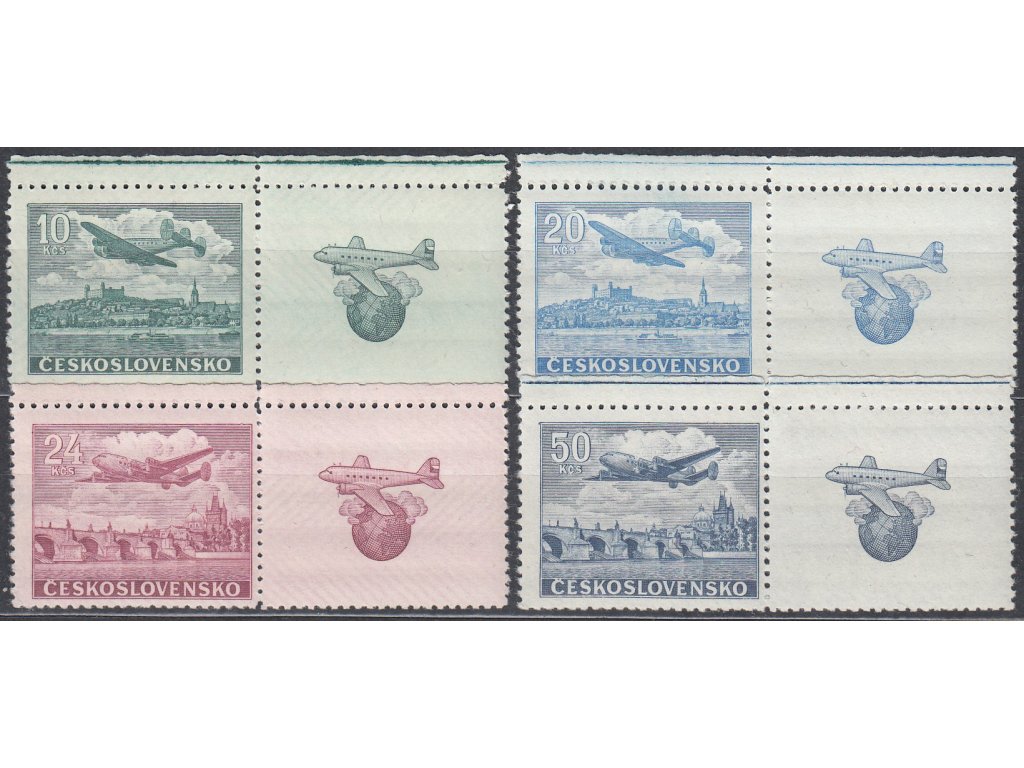 Letecké známky 1946, 10-50Kčs Letecké, vodorovné kupony, Nr.L20-4, **