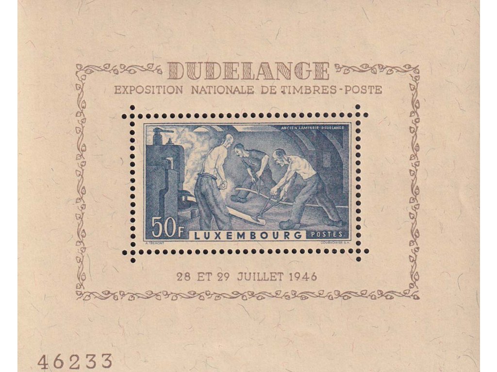 Poštovní známka, 1946, aršík Düdelingen, MiNr.Bl.8, **