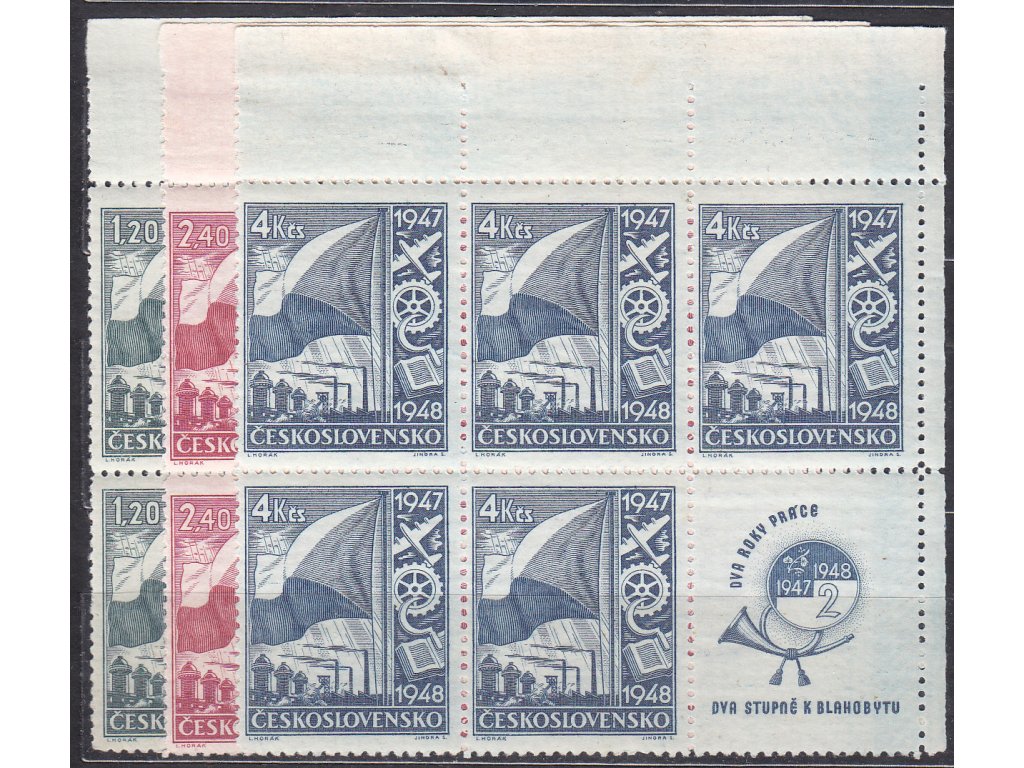 Známky 1947, 1.20-4Kčs Dvouletý hospodářský plán, pravé horní 6bloky, Nr.447-9, **