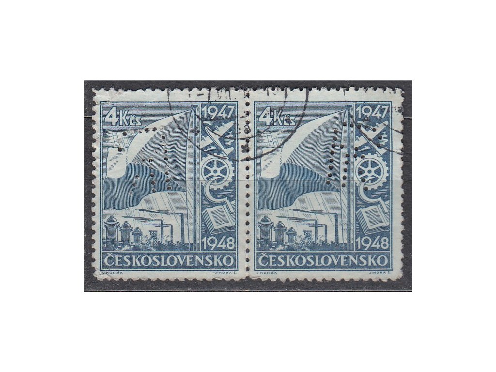 1947, 2.40Kčs Dvouletka, 2páska s perfinem, Nr.449, razítkované, vzácné