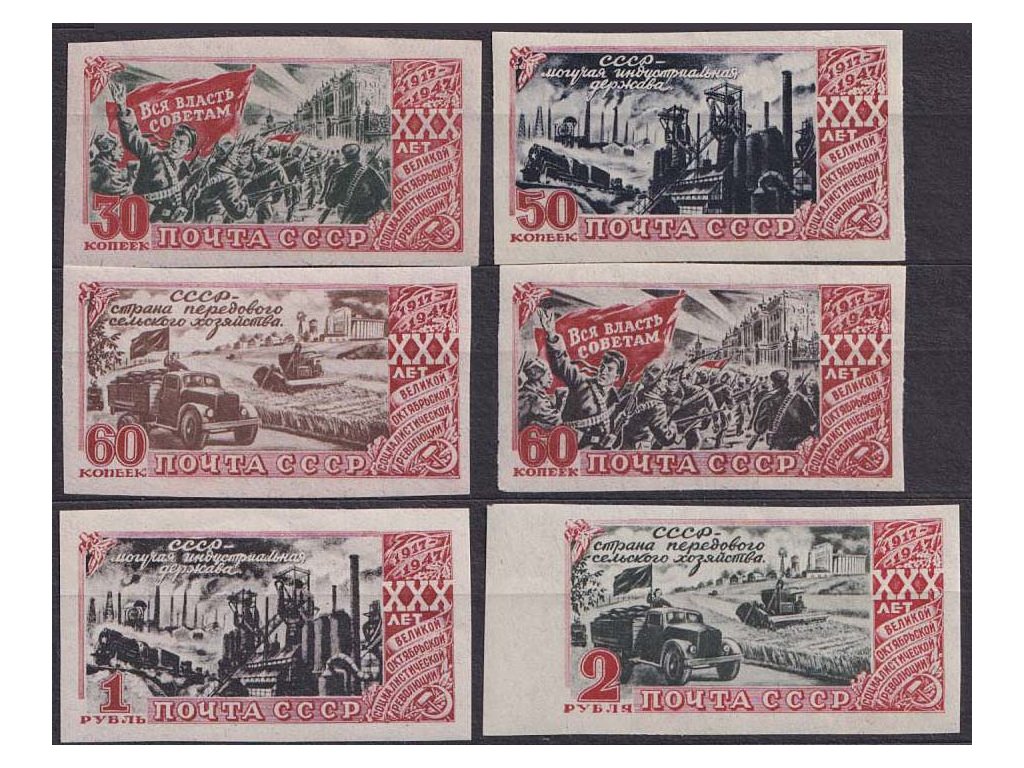 Poštovní známka, 1947, 30K-2 R série Revoluce, MiNr.1062-67B, ** , archové lomy